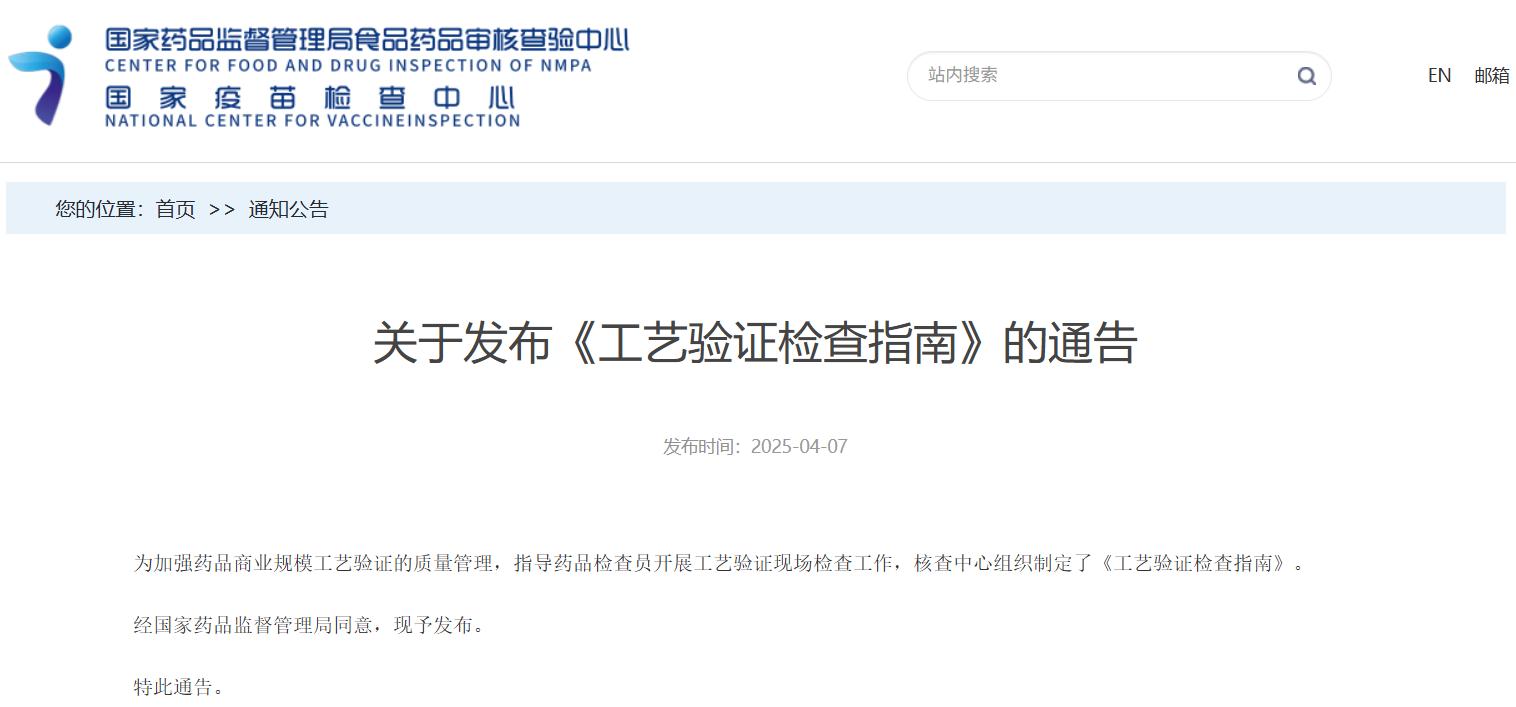 關(guān)于發(fā)布《工藝驗(yàn)證檢查指南》的通告