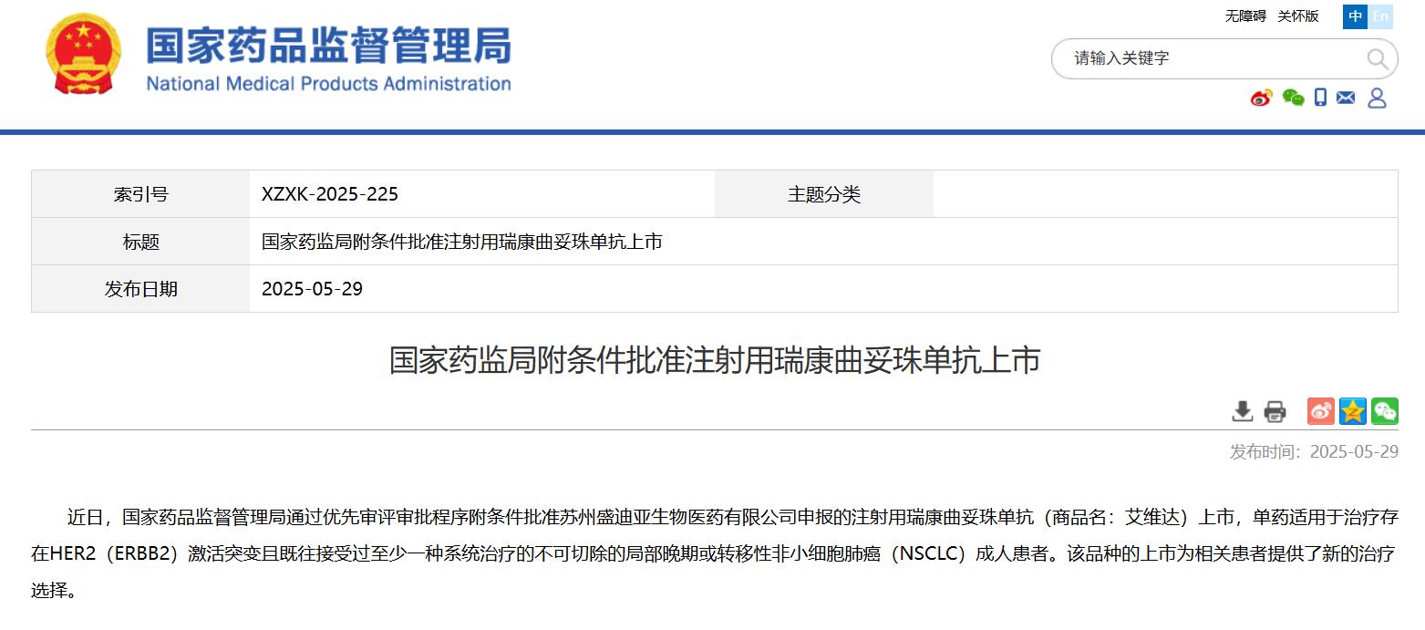 國家藥監(jiān)局附條件批準注射用澤尼達妥單抗上市