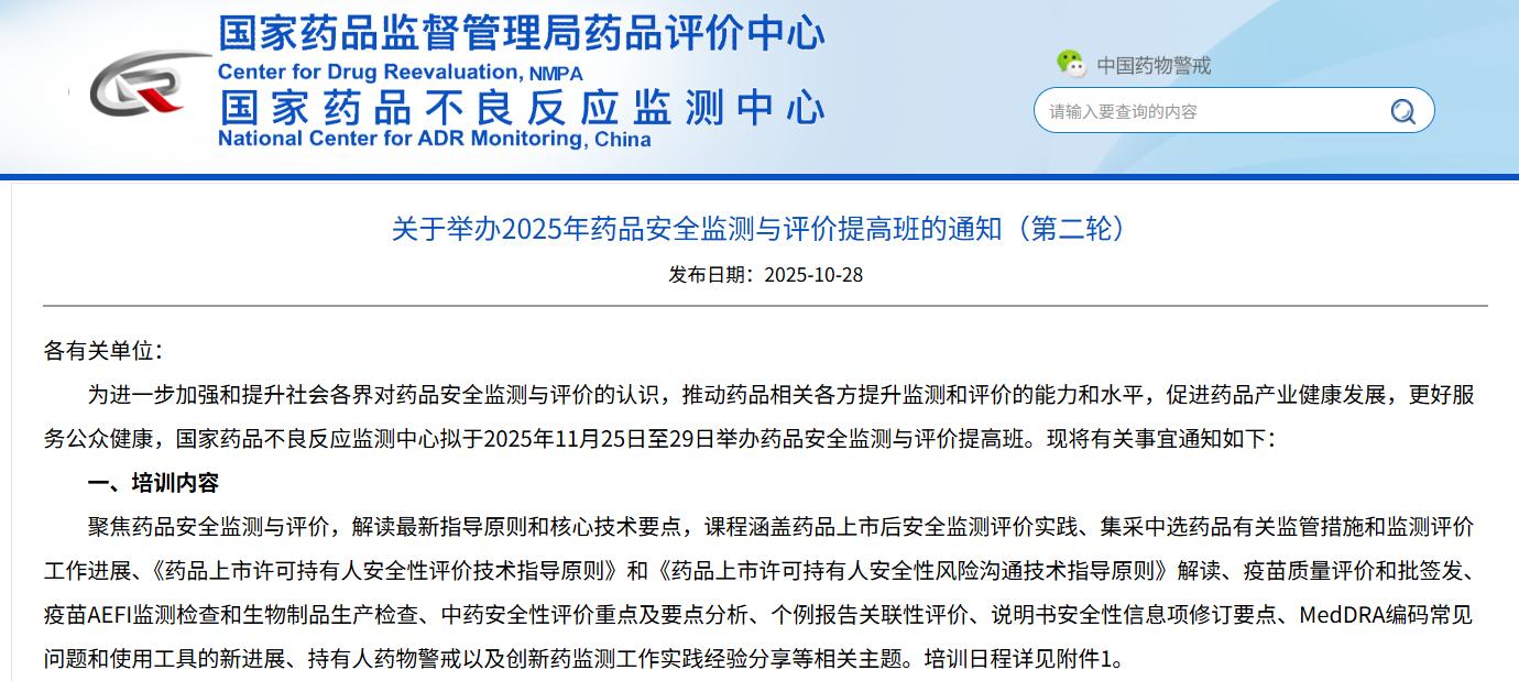 關(guān)于舉辦2025年藥品安全監(jiān)測(cè)與評(píng)價(jià)提高班的通知(第二輪)