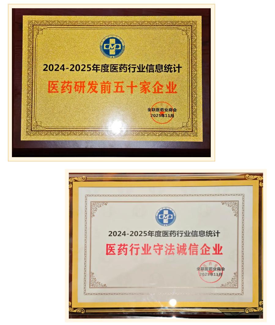喜報(bào) | 新領(lǐng)先醫(yī)藥攬獲2024-2025年度“醫(yī)藥研發(fā)前五十家企業(yè)”和“醫(yī)藥行業(yè)守法誠(chéng)信企業(yè)”雙項(xiàng)榮譽(yù)