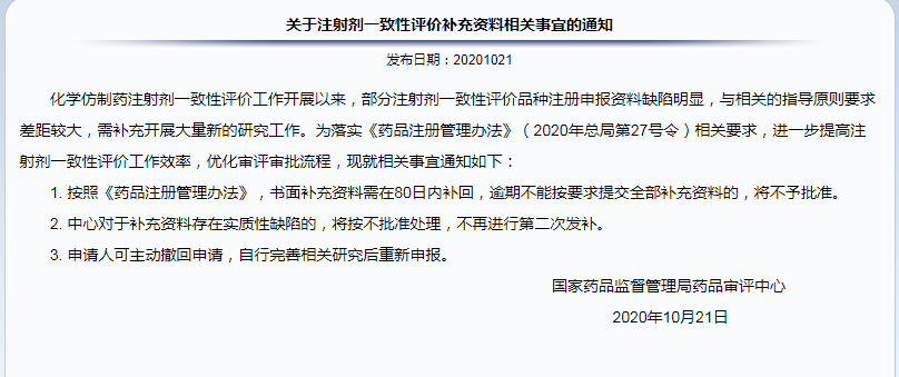 ? 關(guān)于注射劑一致性評價補(bǔ)充資料相關(guān)事宜的通知