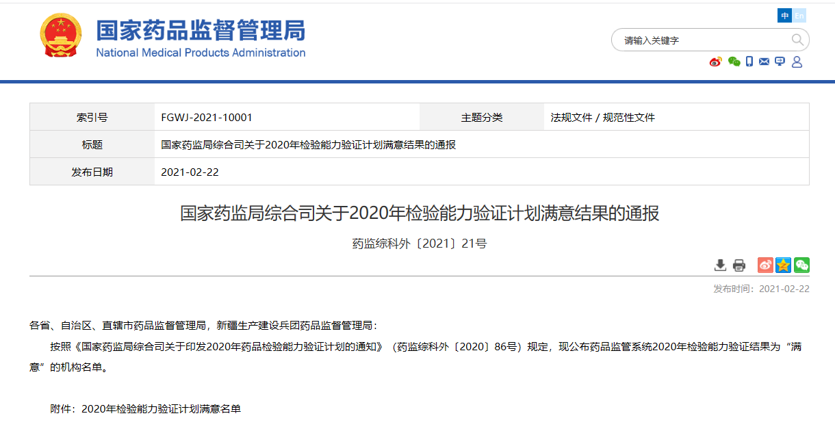 關(guān)于2020年檢驗(yàn)?zāi)芰︱?yàn)證計(jì)劃滿意結(jié)果的通報