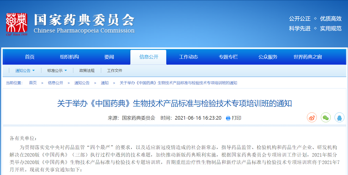 關(guān)于舉辦《中國藥典》生物技術(shù)產(chǎn)品標(biāo)準(zhǔn)與檢驗(yàn)技術(shù)專項(xiàng)培訓(xùn)班的通知