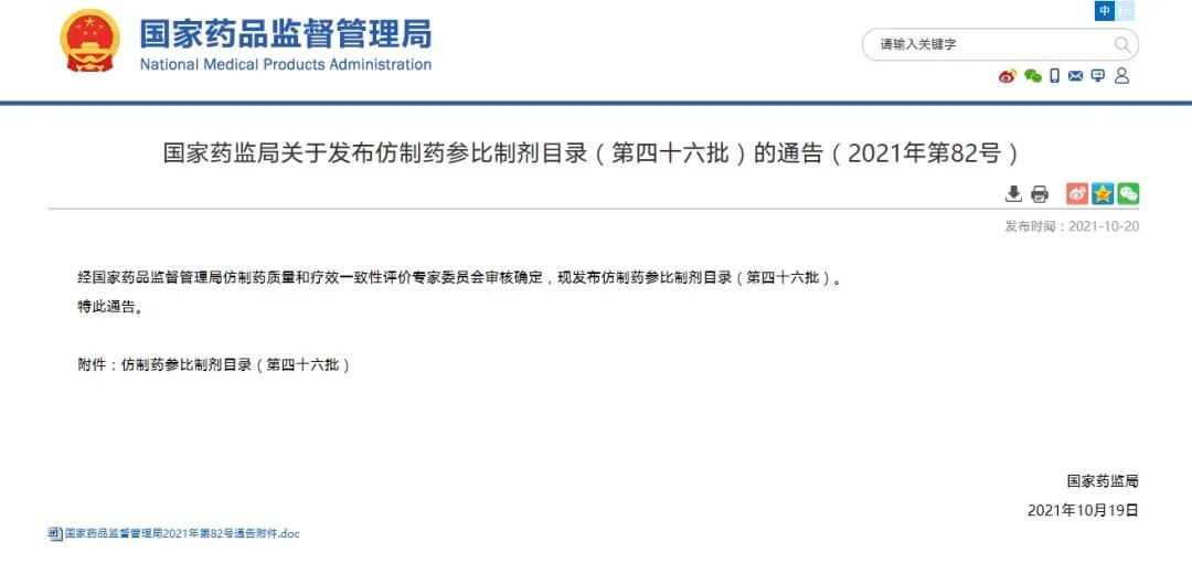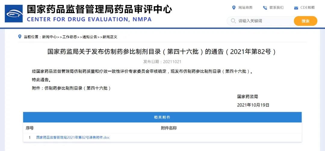 國家藥監(jiān)局關于發(fā)布仿制藥參比制劑目錄(第四十六批)的通告(2021年第82號)