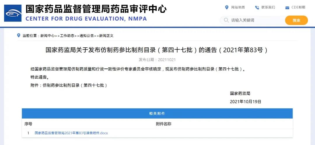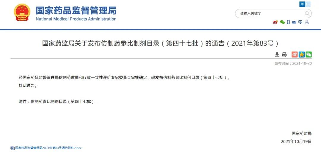 國家藥監(jiān)局關于發(fā)布仿制藥參比制劑目錄(第四十七批)的通告(2021年第83號)