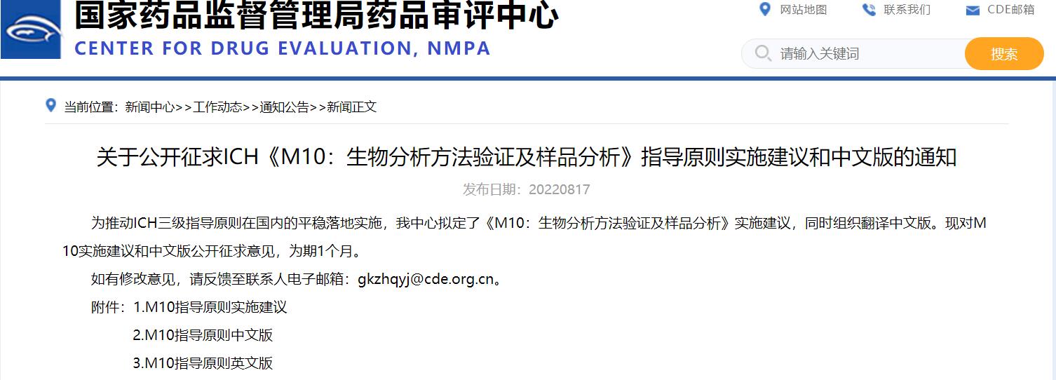 為推動(dòng)ICH三級(jí)指導(dǎo)原則在國內(nèi)的平穩(wěn)落地實(shí)施,我中心擬定了《M10:生物分析方法驗(yàn)證及樣品分析》實(shí)施建議,同時(shí)組織翻譯中文版?,F(xiàn)對(duì)M10實(shí)施建議和中文版公開征求意見,為期1個(gè)月。
