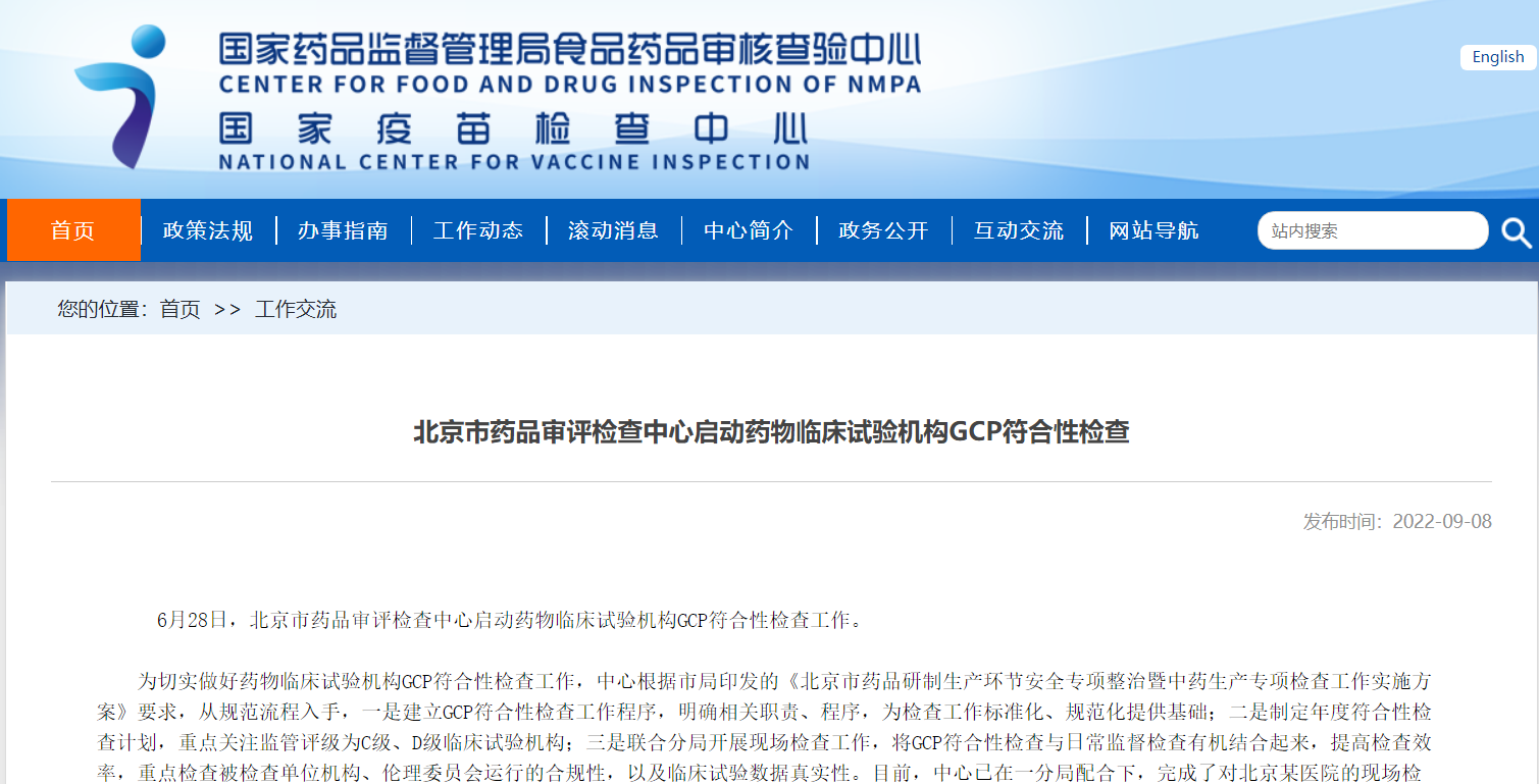 北京市藥品審評檢查中心啟動藥物臨床試驗機構(gòu)GCP符合性檢查