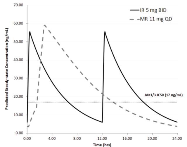 圖2:托法替布速釋片與緩釋片PK曲線