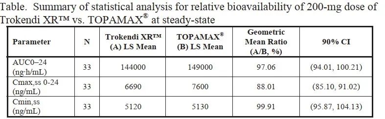 ·托吡酯緩釋膠囊將每個(gè)時(shí)間段的藥動(dòng)學(xué)參數(shù)與片劑進(jìn)行比較,證明兩種制劑的差異較小。實(shí)現(xiàn)豁免驗(yàn)證性臨床。