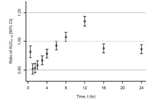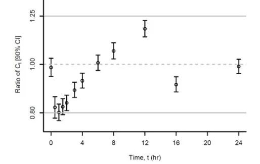 圖7:速釋制劑和緩釋制劑Ct值的生物等效性