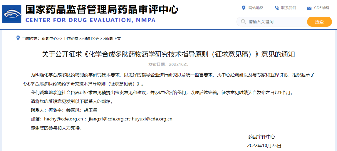 政策法規(guī)||化學(xué)合成多肽藥物藥學(xué)研究技術(shù)指導(dǎo)原則(征求意見稿)發(fā)布(附本周法規(guī)概覽10.24-10.28)