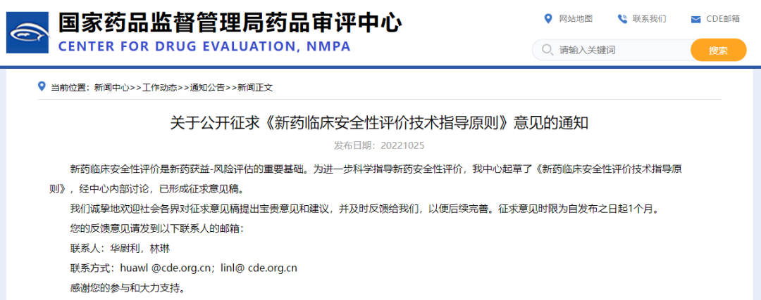 關(guān)于公開征求《新藥臨床安全性評(píng)價(jià)技術(shù)指導(dǎo)原則》意見的通知