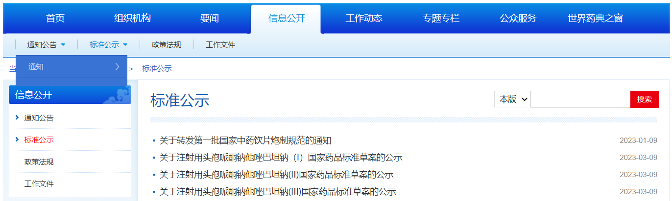 發(fā)布注射用頭孢哌酮鈉他唑巴坦鈉(I)、注射用頭孢哌酮鈉他唑巴坦鈉(II)、注射用頭孢哌酮鈉他唑巴坦鈉(III)國家藥品標(biāo)準(zhǔn)草案的公示。