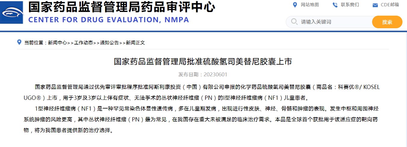 國家藥品監(jiān)督管理局批準硫酸氫司美替尼膠囊上市