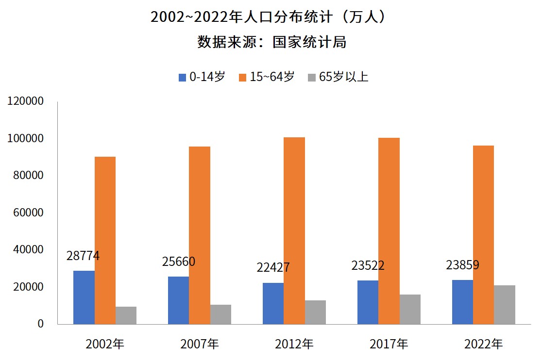 我國兒童的概念通常是指0~14歲的人群。我國兒童人口基數(shù)龐大,國家統(tǒng)計(jì)局?jǐn)?shù)據(jù)顯示,2022年我國0~14周歲人口為2.39億人,占總?cè)丝诒壤?7%。隨著國家全面開放二胎和三胎政策,兒童醫(yī)療需求亦不斷高漲,診療人次以每年400萬~500萬人次遞增。