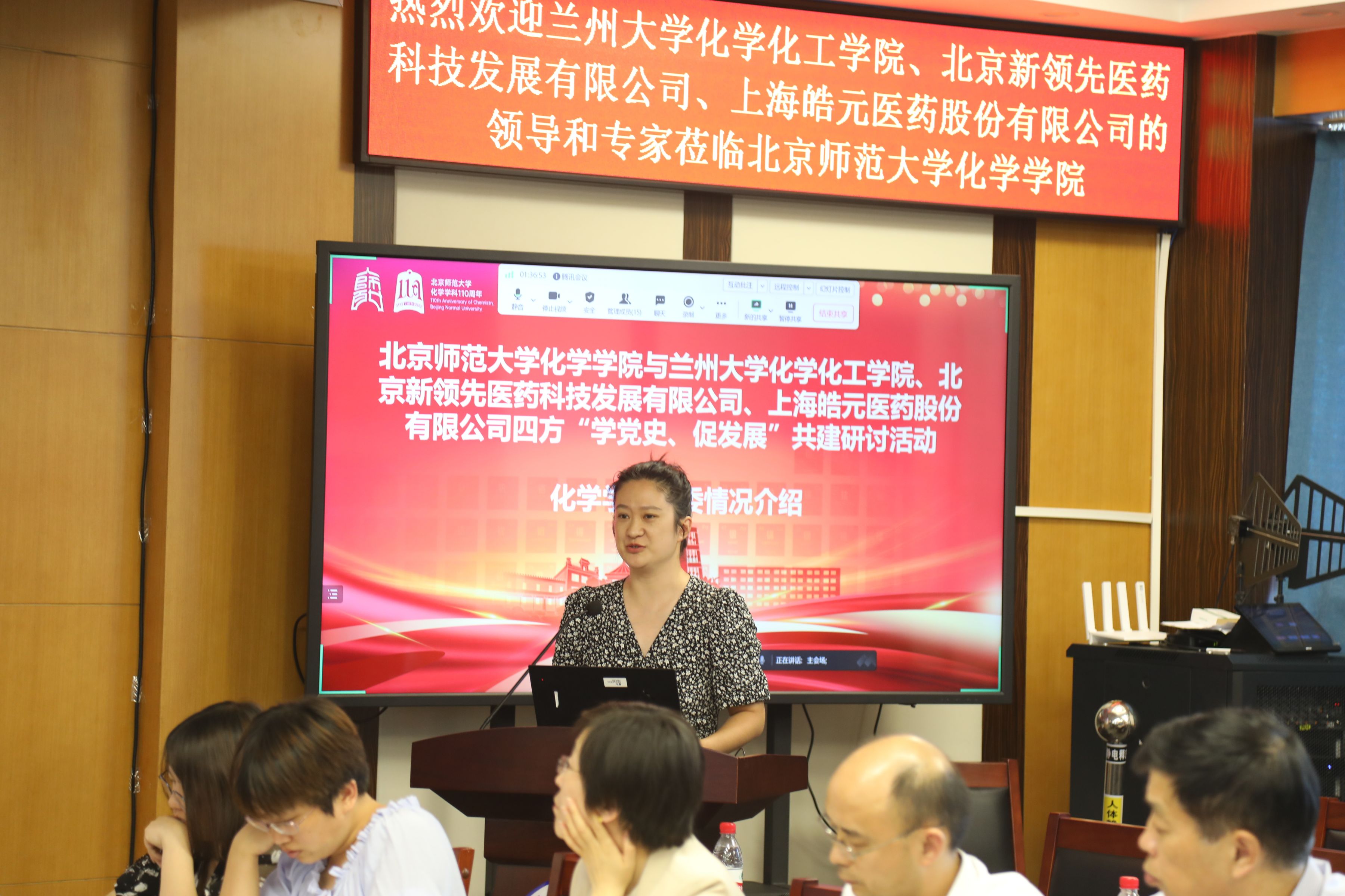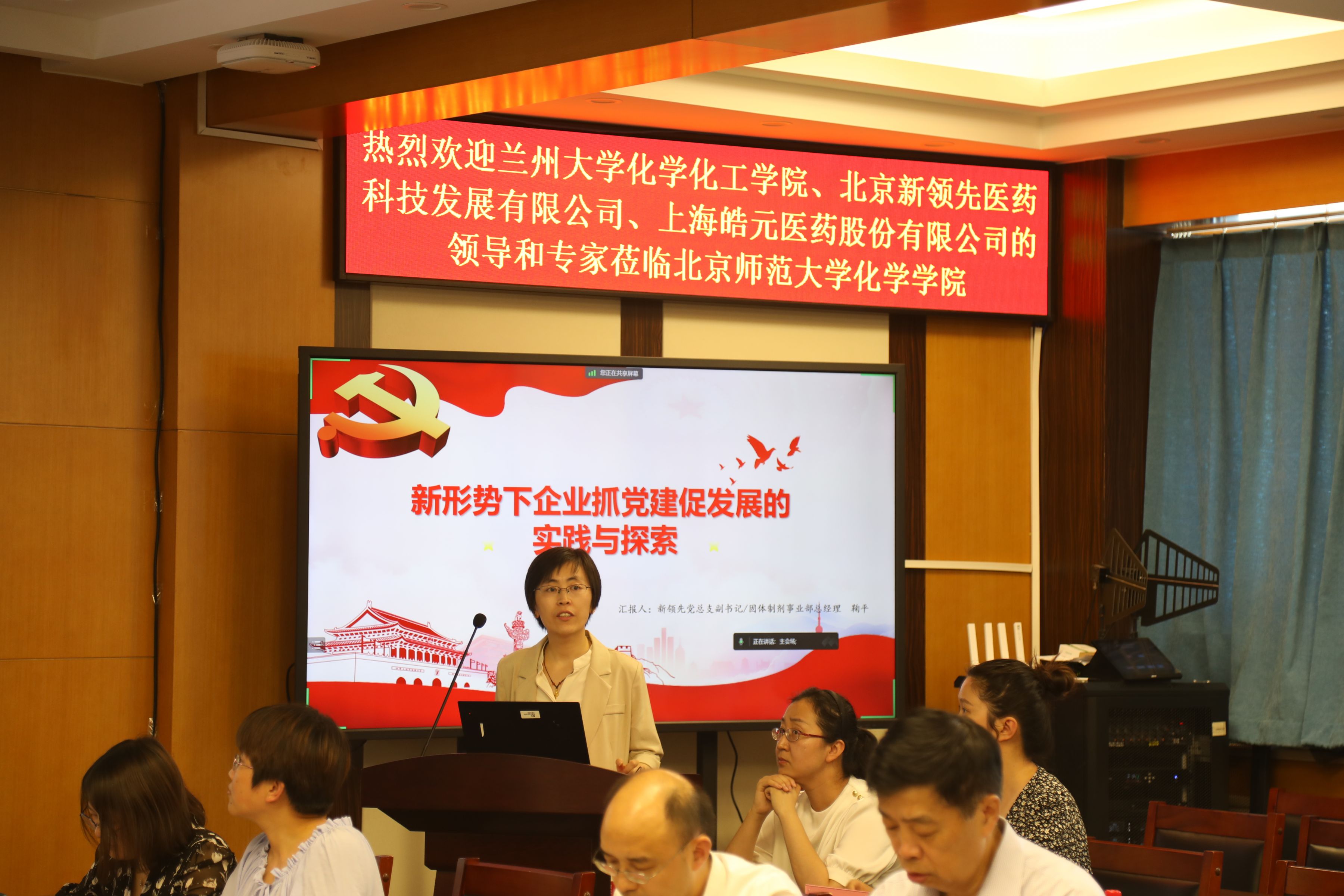 ▲ 新領(lǐng)先醫(yī)藥黨總支副書(shū)記、固體制劑事業(yè)部總經(jīng)理鞠平女士,蘭州大學(xué)化學(xué)化工學(xué)院丁三元教授,北師大化學(xué)學(xué)院黨委辦公室主任、團(tuán)委書(shū)記徐娜女士分別作黨建工作匯報(bào)