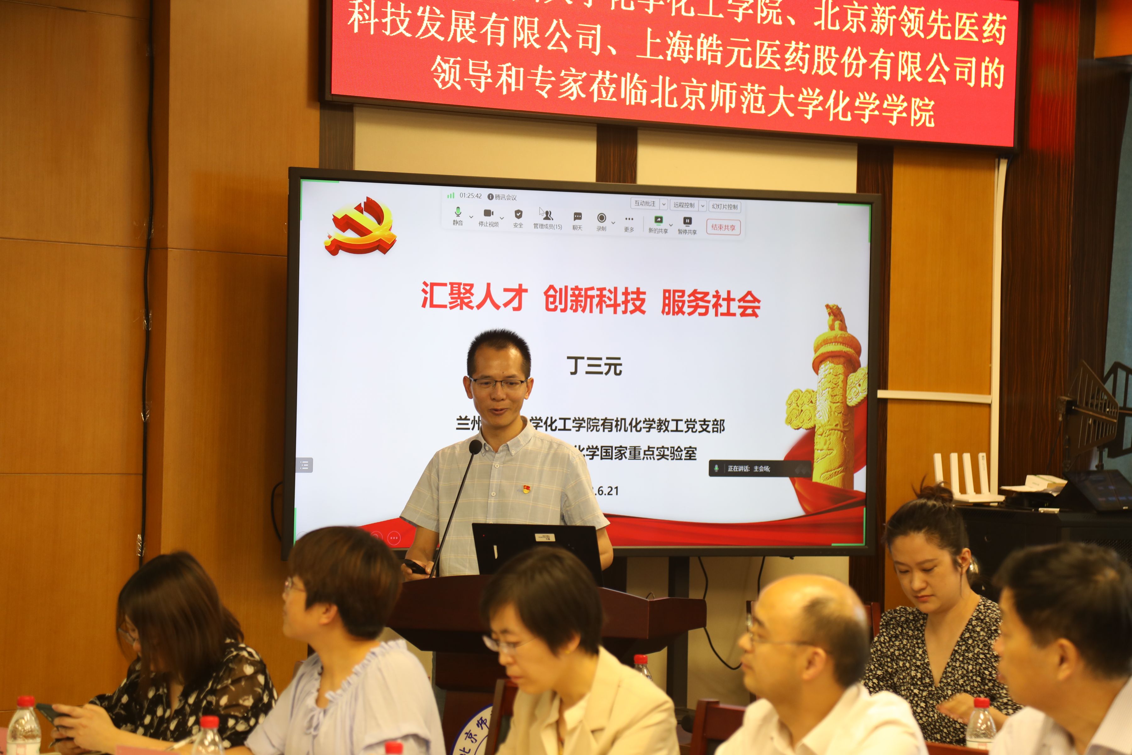 參加本次研討活動(dòng)的有:北京師范大學(xué)化學(xué)學(xué)院黨委書(shū)記盧忠林教授,化學(xué)學(xué)院院長(zhǎng)毛蘭群教授,化學(xué)學(xué)院黨委副書(shū)記韓娟博士,科研院校地合作與科研成果轉(zhuǎn)化處副處長(zhǎng)孫根班教授;蘭州大學(xué)化學(xué)化工學(xué)院黨委書(shū)記杜生一博士,功能有機(jī)分子化學(xué)國(guó)家重點(diǎn)實(shí)驗(yàn)室主任王為教授(線(xiàn)上);新領(lǐng)先醫(yī)藥黨總支書(shū)記、董事長(zhǎng)陶新華先生,副總裁顏耀東先生、張翔先生,黨總支副書(shū)記、固體制劑事業(yè)部總經(jīng)理鞠平女士,黨總支紀(jì)支檢委員、臨床運(yùn)營(yíng)部副總監(jiān)杜書(shū)青女士;上海皓元產(chǎn)品負(fù)責(zé)人、樂(lè)研首席科學(xué)家陳委先生等30余人。