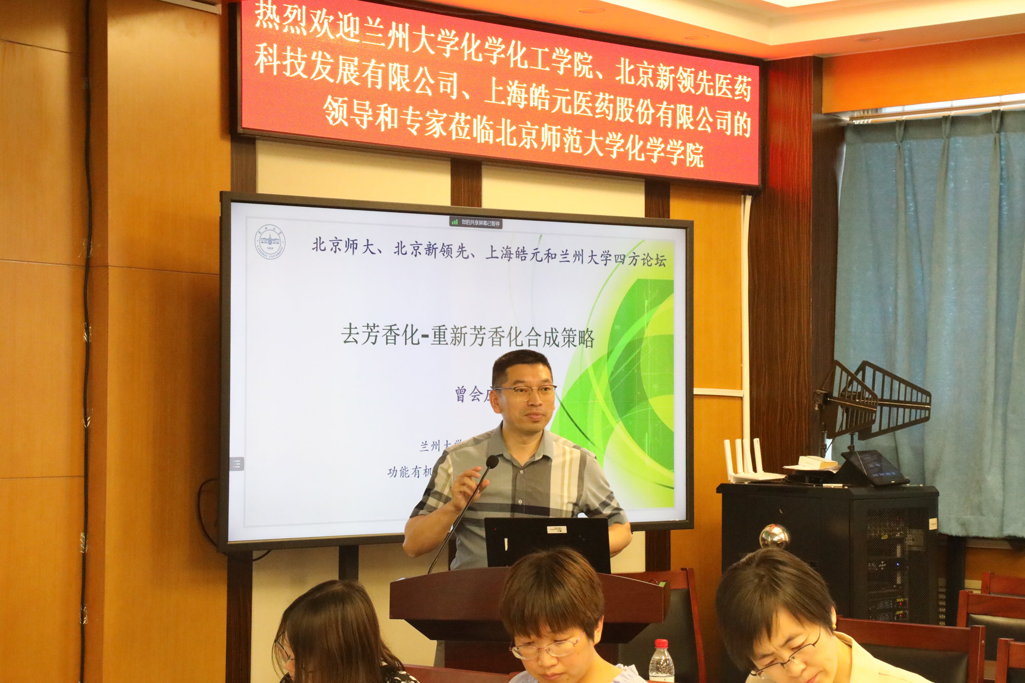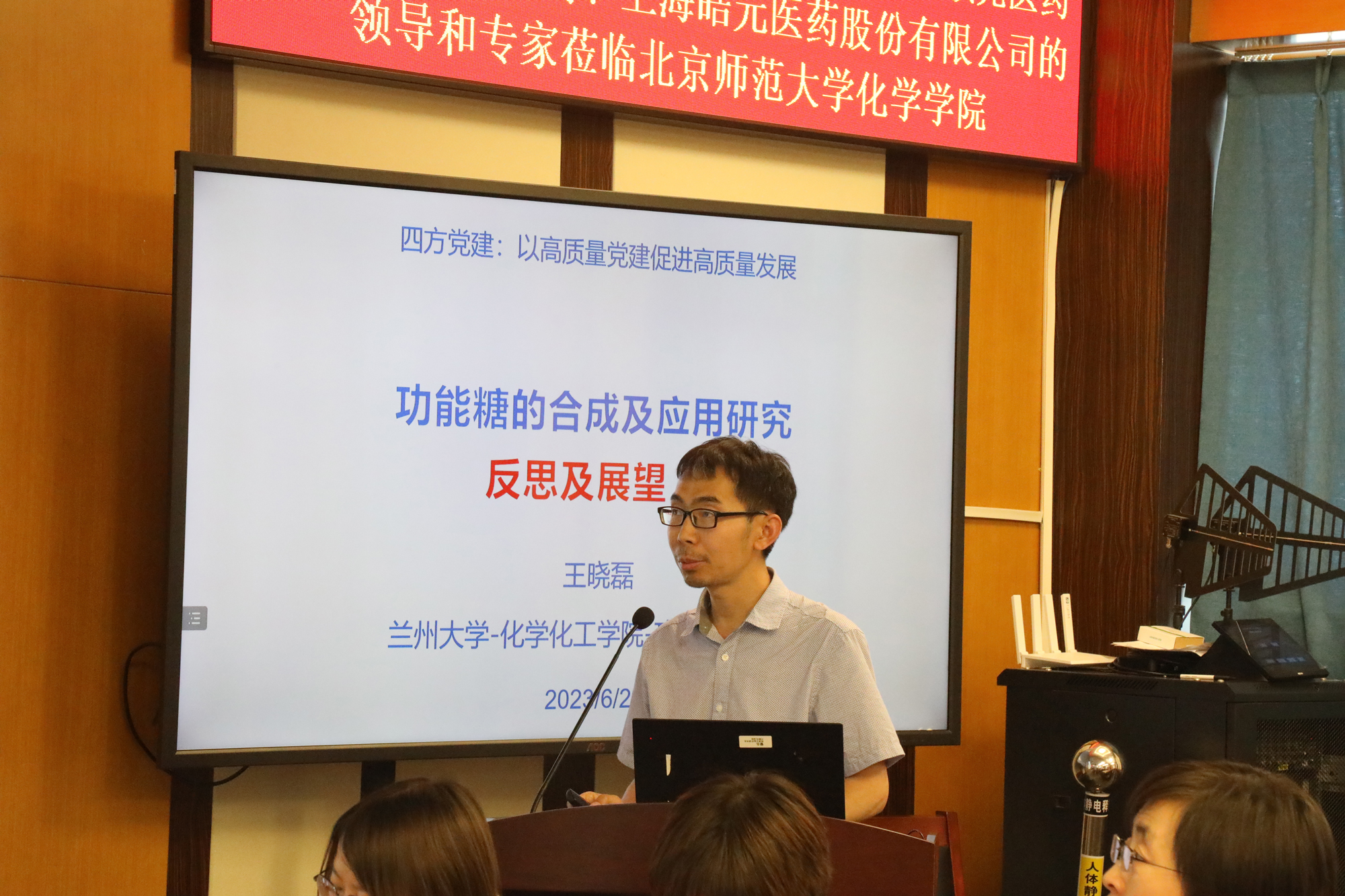 蘭州大學(xué)化學(xué)化工學(xué)院王曉磊教授、曾會(huì)應(yīng)教授分別作《功能糖合成及應(yīng)用研究》、《去芳香化-重新芳香化策略應(yīng)用》主題分享,針對(duì)最新的研究進(jìn)展與成果與在場(chǎng)專(zhuān)家領(lǐng)導(dǎo)進(jìn)行分享;上海皓元醫(yī)藥產(chǎn)品負(fù)責(zé)人、樂(lè)研首席科學(xué)家陳委先生作《高??蒲谐晒诠酒脚_(tái)轉(zhuǎn)化的案例報(bào)告》分享,針對(duì)實(shí)際案例對(duì)公司科研成果轉(zhuǎn)化項(xiàng)目進(jìn)行詳細(xì)介紹,為后續(xù)的產(chǎn)學(xué)研合作奠定基礎(chǔ);北京師范大學(xué)化學(xué)學(xué)院黨委書(shū)記盧忠林教授、江迎教授分別作《藥物遞送載體的合成及性能研究》、《腦化學(xué)原位測(cè)量方法與應(yīng)用基礎(chǔ)研究》報(bào)告分享,各方切實(shí)做到資源共享,優(yōu)勢(shì)互補(bǔ)。各方通過(guò)課題的深入學(xué)習(xí)和交流,組建高校-企業(yè)創(chuàng)新聯(lián)合體,通過(guò)產(chǎn)學(xué)研深度合作,推動(dòng)開(kāi)展關(guān)鍵核心技術(shù)、基礎(chǔ)前沿技術(shù)攻關(guān),努力實(shí)現(xiàn)重點(diǎn)領(lǐng)域、關(guān)鍵環(huán)節(jié)自主可控的國(guó)家戰(zhàn)略部署。