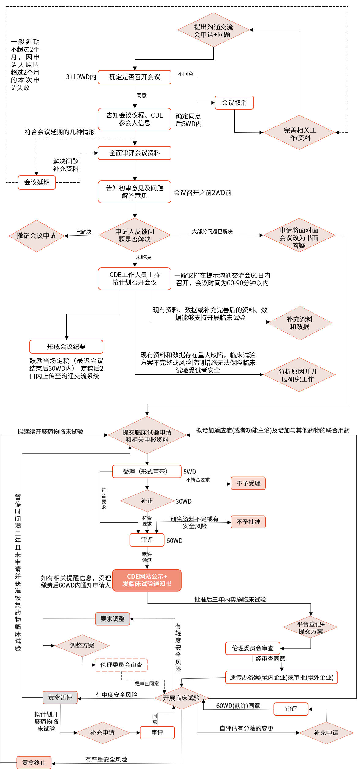 ▲ pre-IND溝通交流會(huì)、藥物臨床試驗(yàn)申請(qǐng)流程圖
