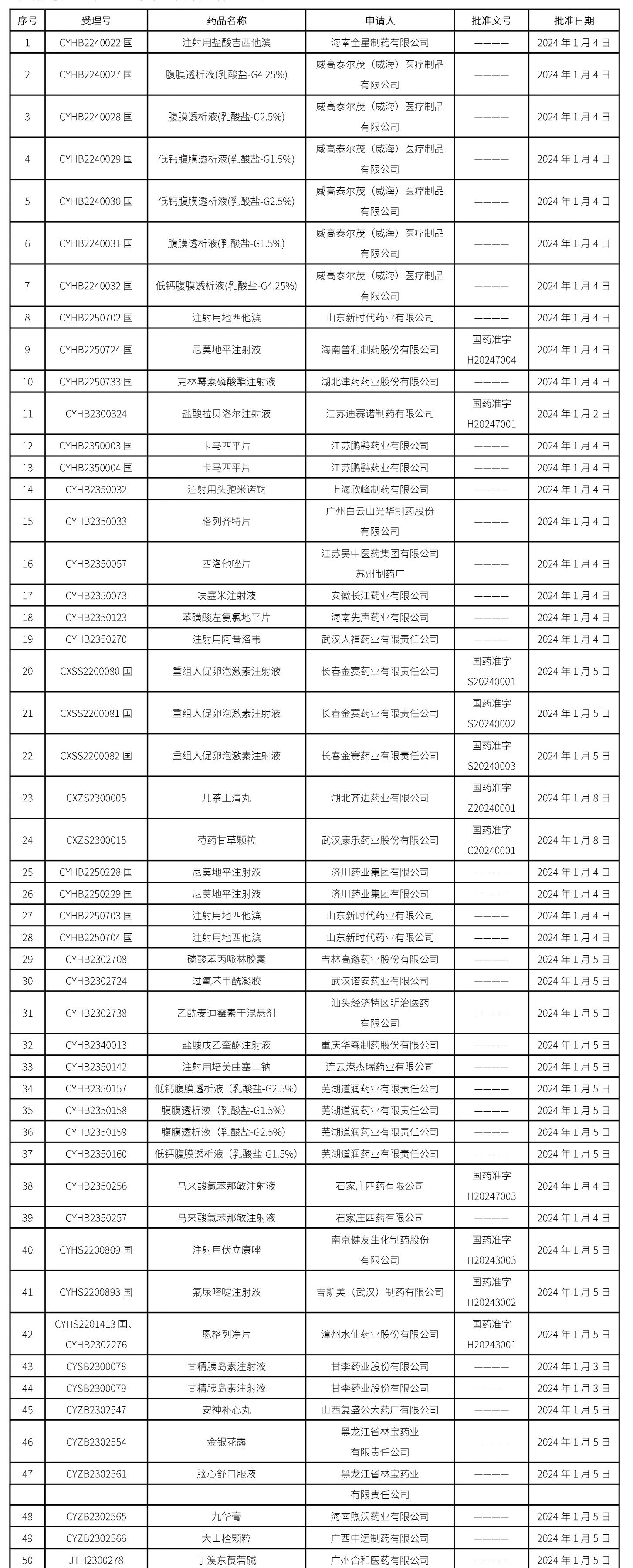 截至2024年1月12日 15:00本周發(fā)布122個待領(lǐng)取藥品批準證明文件,其中注射液48個,一致性評價品種36個。