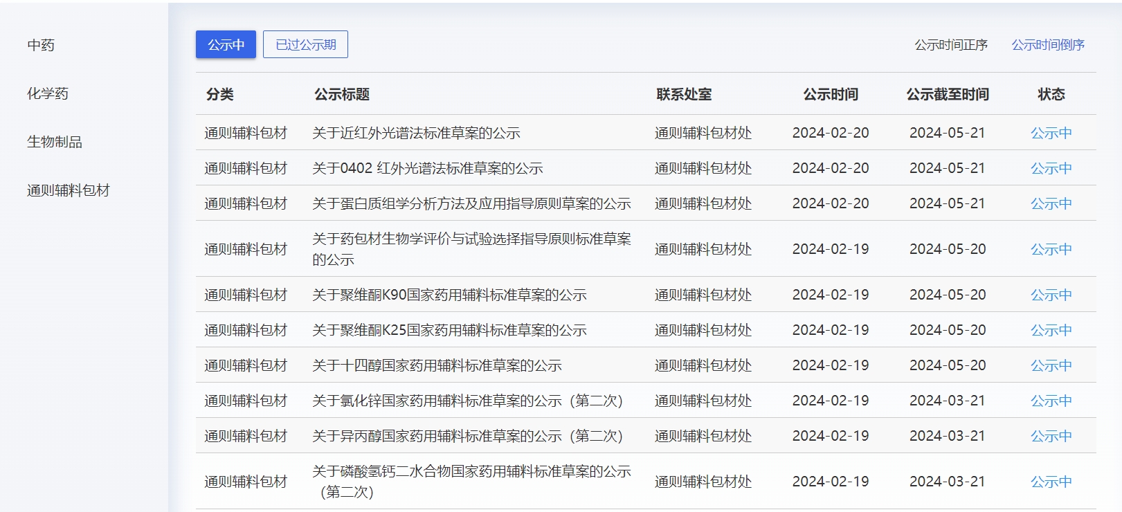 本周藥典委發(fā)布11種藥用輔料標(biāo)準(zhǔn)草案,3種指導(dǎo)原則標(biāo)準(zhǔn)草案,2種光譜法標(biāo)準(zhǔn)草案公示。