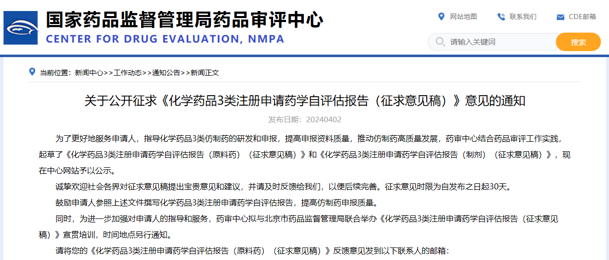 關(guān)于公開征求《化學(xué)藥品3類注冊申請藥學(xué)自評估報告(征求意見稿)》意見的通知