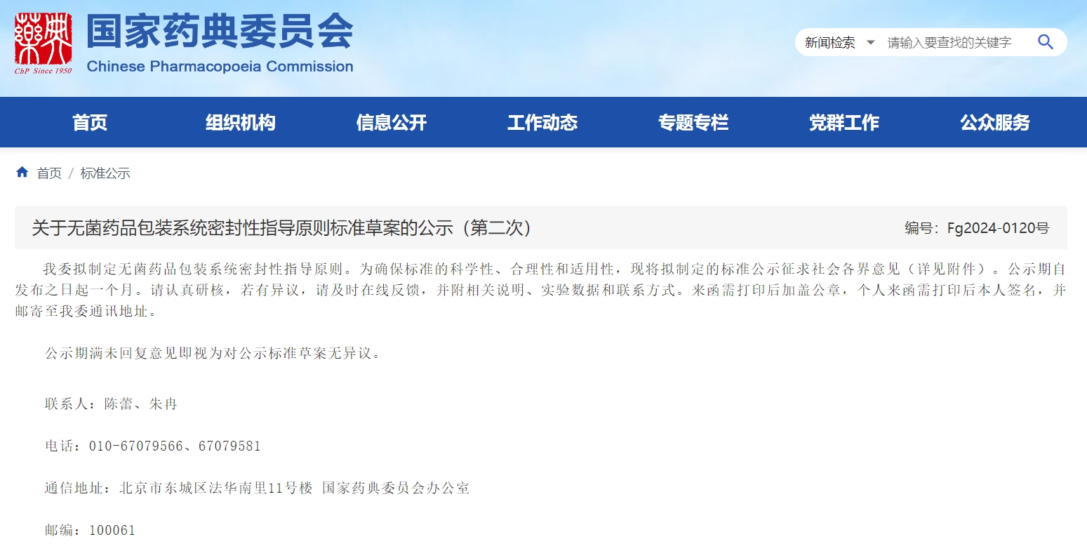 關(guān)于無菌藥品包裝系統(tǒng)密封性指導(dǎo)原則標(biāo)準(zhǔn)草案的公示(第二次)