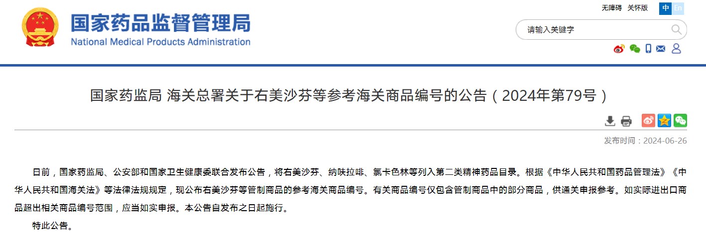 海關(guān)總署關(guān)于右美沙芬等參考海關(guān)商品編號的公告