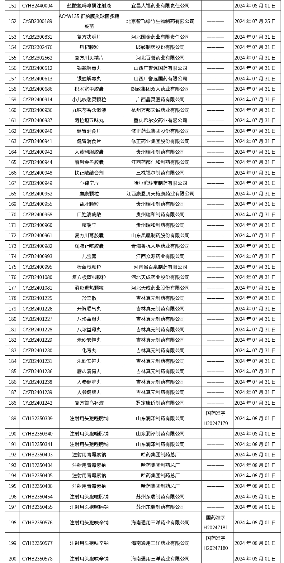 2024年08月05日中藥品種保護受理公示