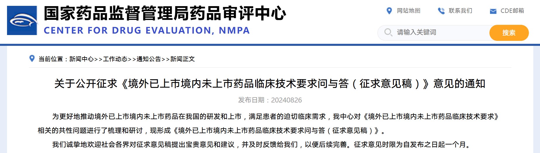 國(guó)家藥監(jiān)局藥審中心關(guān)于公開(kāi)征求《境外已上市境內(nèi)未上市藥品臨床技術(shù)要求問(wèn)與答(征求意見(jiàn)稿)》意見(jiàn)的通知