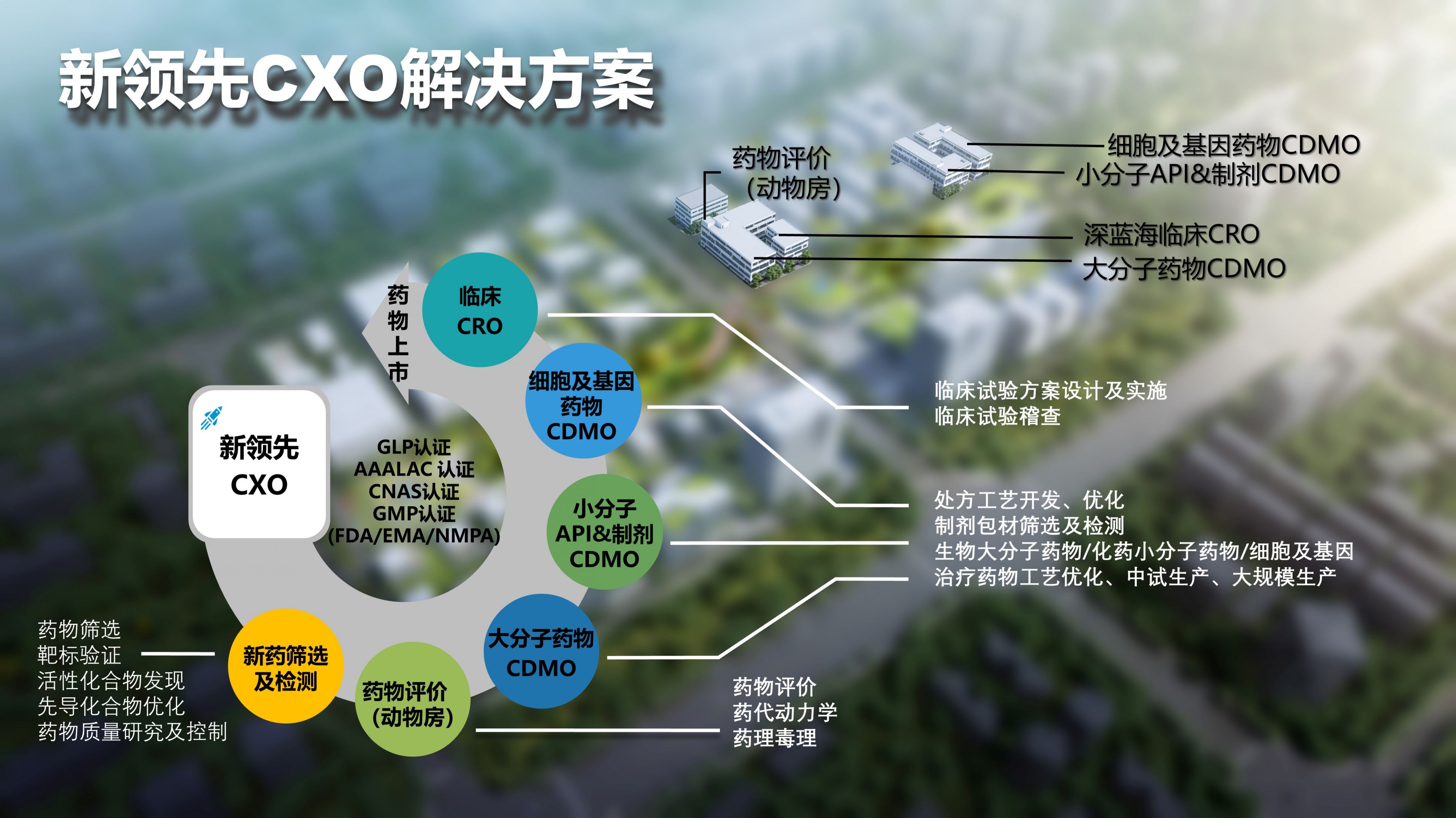 Beijing Leadingpharm relies on the existing technical and management team, the integration of Lifezhengzhou Biopharmaceutical Park platform, fully investment, constructed and operated the new drug screening and testing platform, drug evaluation platform (animal room), macromolecule pilot and large-scale production service platform, small molecule CMC preparation research and production platform, cell technical service platform, clinical CRO platform" six technical service platform in line with international standards, open up the pharmaceutical research and development upstream and downstream industries. Leadingpharm CXO System multi-dimensional all-round energy innovation enterprises to break through bottlenecks and accelerate the development of the pharmaceutical industry.